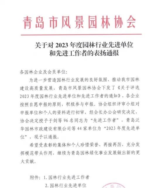 喜報(bào)!集團(tuán)獲得青島市風(fēng)景園林協(xié)會(huì)多項(xiàng)表彰