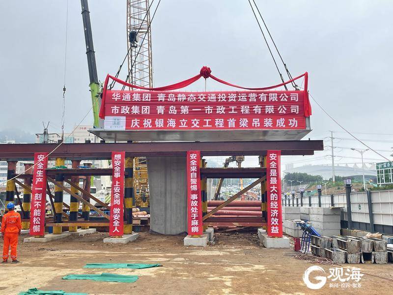 【青島日報社/觀海新聞】工程建設進度持續(xù)“超車”!海爾路銀川路立交工程首段鋼箱梁吊裝成功