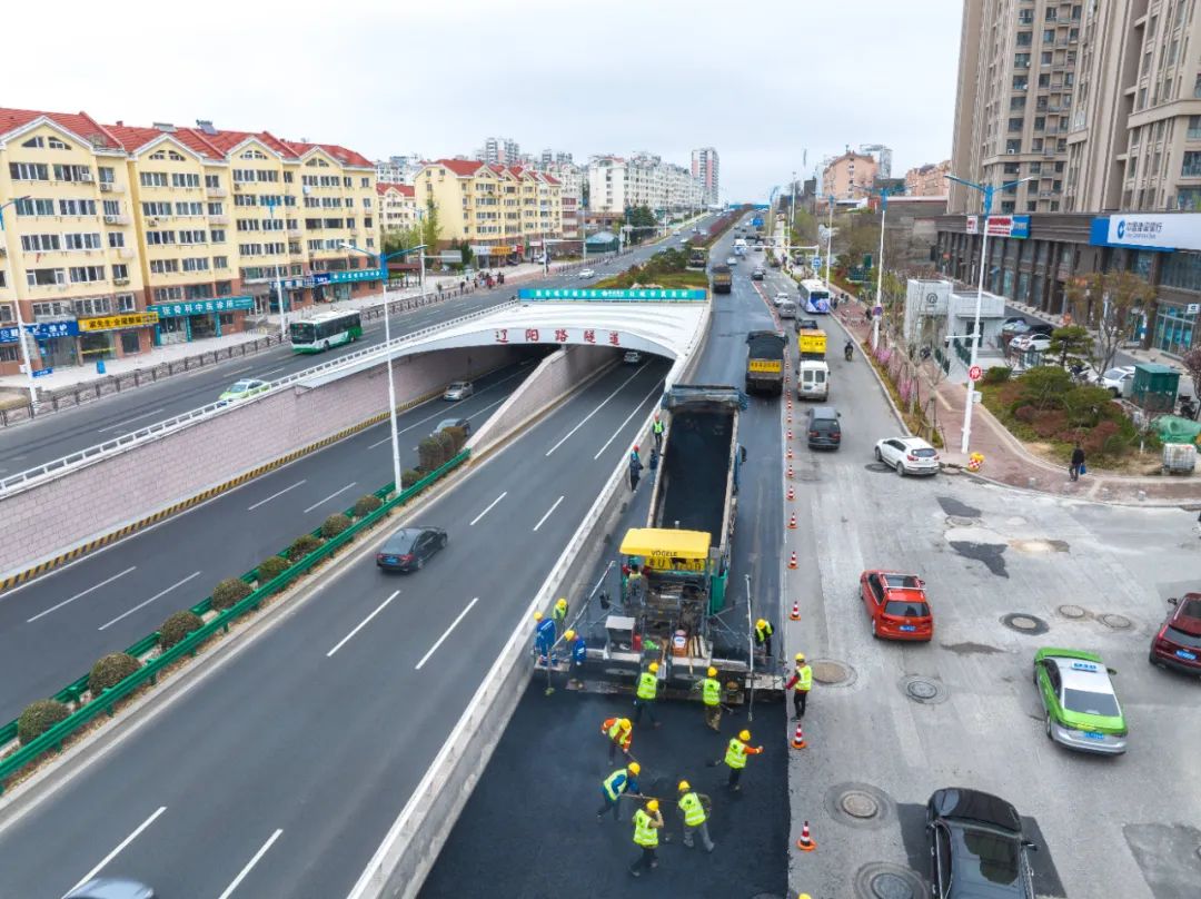 新進展!遼陽路快速路工程南半幅進行最后一層瀝青攤鋪