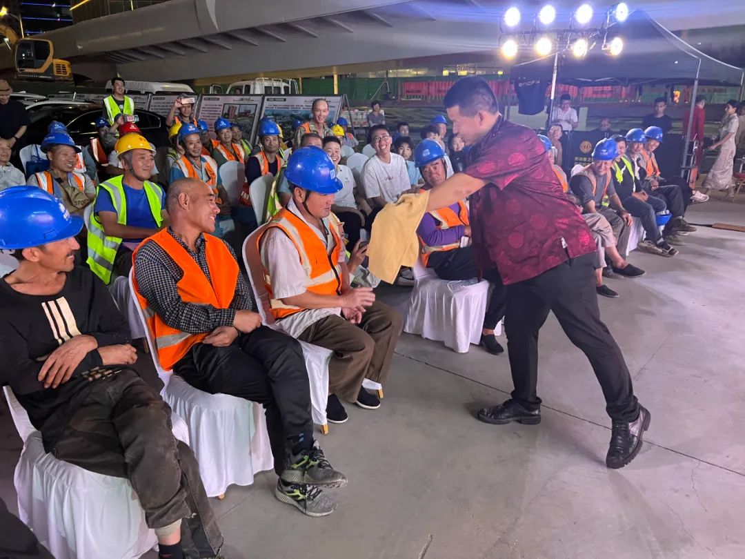 當(dāng)前,海爾路-銀川路立交工程正處于項(xiàng)目建設(shè)的沖刺階段,本次慰問演出可謂恰逢其時(shí),不僅豐富了項(xiàng)目建設(shè)者們的精神文化生活,更提振了大家團(tuán)結(jié)一心、干事創(chuàng)業(yè)的精氣神。接下來,項(xiàng)目全體人員將以高度的責(zé)任感和使命感,理清管理思路,發(fā)揚(yáng)“說了算、定了干、高質(zhì)量、按期完”的“新市政鐵軍精神”,高標(biāo)準(zhǔn)、嚴(yán)要求,確保實(shí)現(xiàn)十一月項(xiàng)目整體竣工的建設(shè)目標(biāo)。