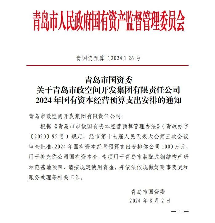 近日,集團(tuán)申報(bào)的青島市裝配式鋼結(jié)構(gòu)產(chǎn)研示范基地項(xiàng)目,經(jīng)市第十七屆人民代表大會(huì)第三次會(huì)議審查批準(zhǔn),獲得國有資本經(jīng)營預(yù)算支出專項(xiàng)資金獎(jiǎng)補(bǔ) 1000 萬元。這是集團(tuán)第三次通過該項(xiàng)審批,累計(jì)獲得獎(jiǎng)補(bǔ)資金 4500 萬元,為主業(yè)發(fā)展提供了有力的資金支持與政府背書。