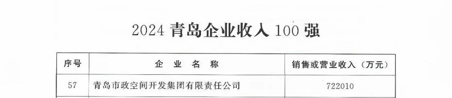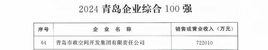近日,在青島市企業(yè)聯(lián)合會連續(xù)19年發(fā)布的“青島企業(yè)100強(qiáng)”評選中,我集團(tuán)榮獲“2024青島企業(yè)收入100強(qiáng)”第57名,較2023年提升15名,位列市直企業(yè)第8名,同時(shí)榮獲“2024青島企業(yè)綜合100強(qiáng)”第64名,較2023年提升3名,位列市直企業(yè)第10名。