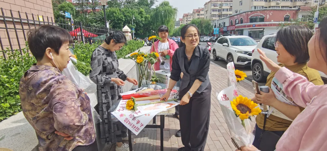 地鐵9號線項目部志愿服務(wù)隊來到城陽區(qū)職業(yè)教育中心考點附近,給參加高考的學(xué)子們加油鼓勁,為考生及家長送上誠摯的祝福。志愿者們將一支支向日葵搭配、包裝后,以“金榜題名”“一舉奪魁”的美好寓意,向廣大考生送去美好祝愿。