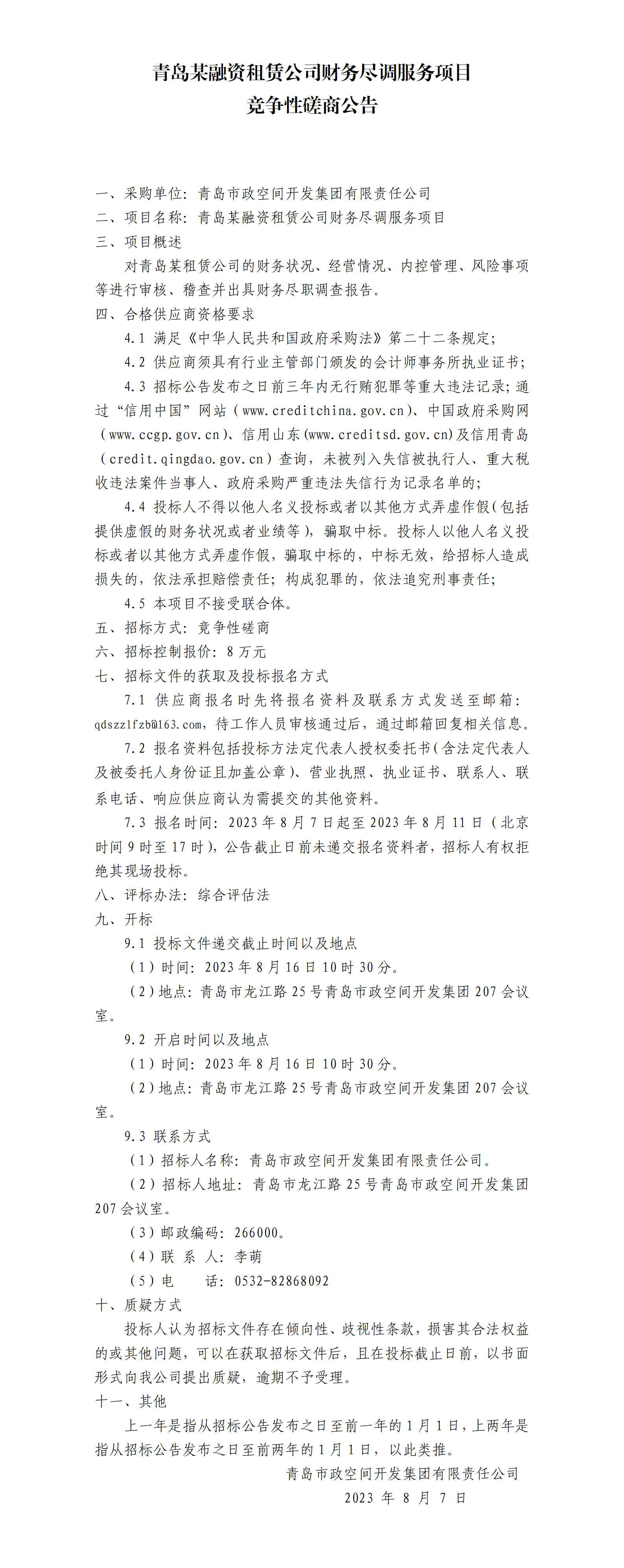 青島某融資租賃公司財務(wù)盡調(diào)服務(wù)項目